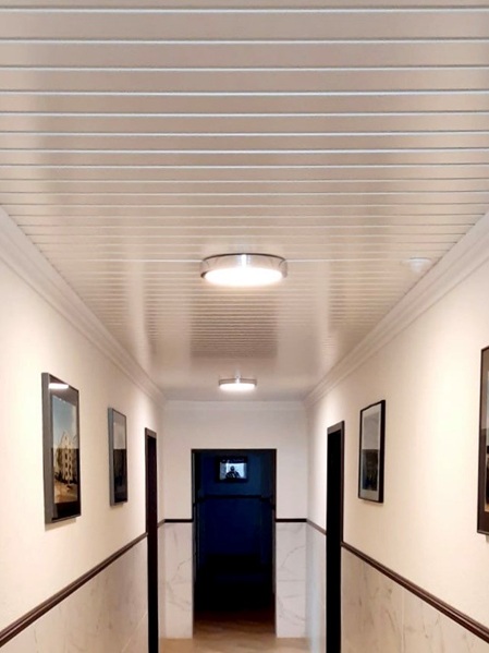 Die abgehängten ORIGINAL DOBNER Aluminium-Paneeldecken eignen sich besonders hervorragend für Flure!