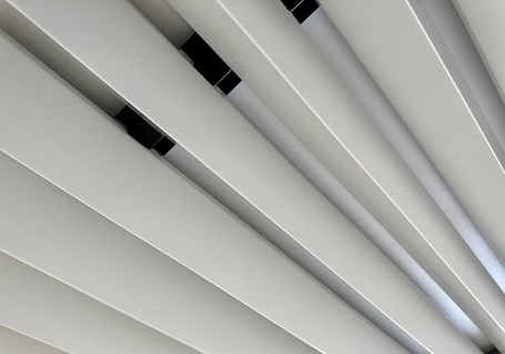 Weiterhin haben Sie die Möglichkeit, verschiedenfarbige MW-Baffles zu mischen. Auch können Sie farbige LED-Strips zwischen den einzelnen Baffles integrieren. Bei sehr langen Räumen, wie z.B. Airport Terminals kann jede zweite Reihen ausgelassen werden und dadurch Kosten bis zu 45 % eingespart werden.